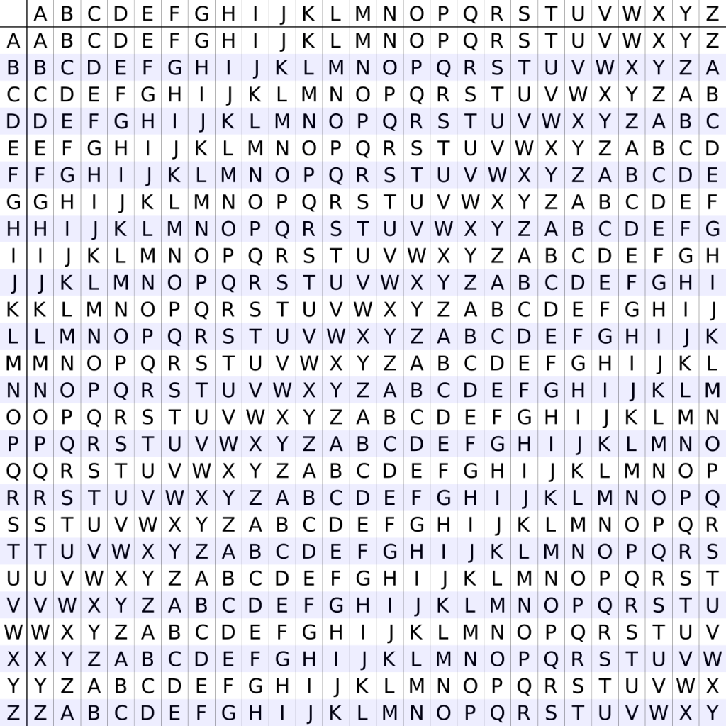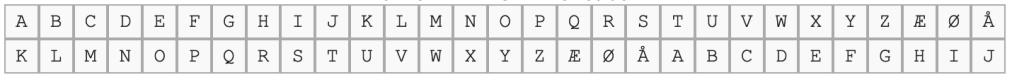 Det vil derfor være logisk, at O svarer til E i chifferteksten, dvs. at nøglen er 10. Vi kan derfor bruge dette skema til at dekryptere chifferteksten.